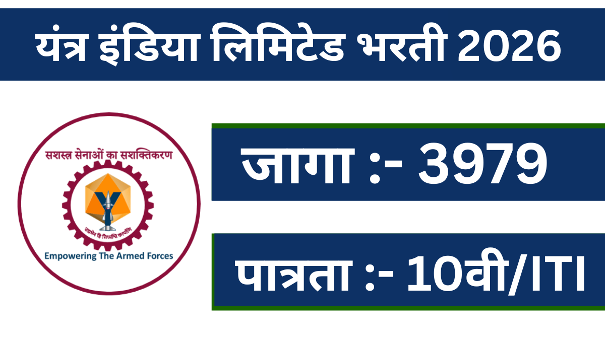 या लेखामध्ये आपण Yantra India Limited Recruitment 2026, पात्रता, वयोमर्यादा, वेतन, निवड प्रक्रिया, अर्ज कसा करावा, महत्वाच्या तारखा आणि इतर सर्व महत्वाची माहिती सविस्तर पाहणार आहोत.